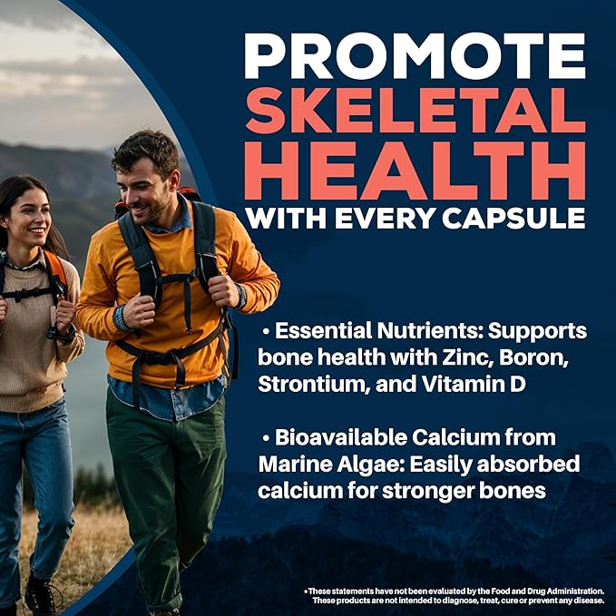 - Promotes Skeletal Health: Algae-based calcium, magnesium, vitamin D3, vitamin K2, and boron play key roles in supporting bone and skeletal health