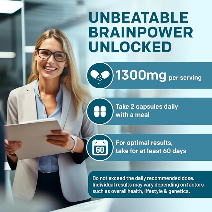 - How to Take: Take 2 capsules of our memory supplement for brain daily with a light meal. For optimal results, take consistently for 60 days, accompanied by a good diet, exercise, and regular sleep. Each serving has 1300mg.