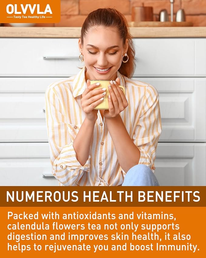 Olvvla - Natural Calendula Flowers Tea Bags - 1.5g X 50 Count - Premium Calendula Tea - Non-GMO - Caffeine-free - Dried Calendula Herbal Tea - Rich in Antioxidants & Promote Relaxation