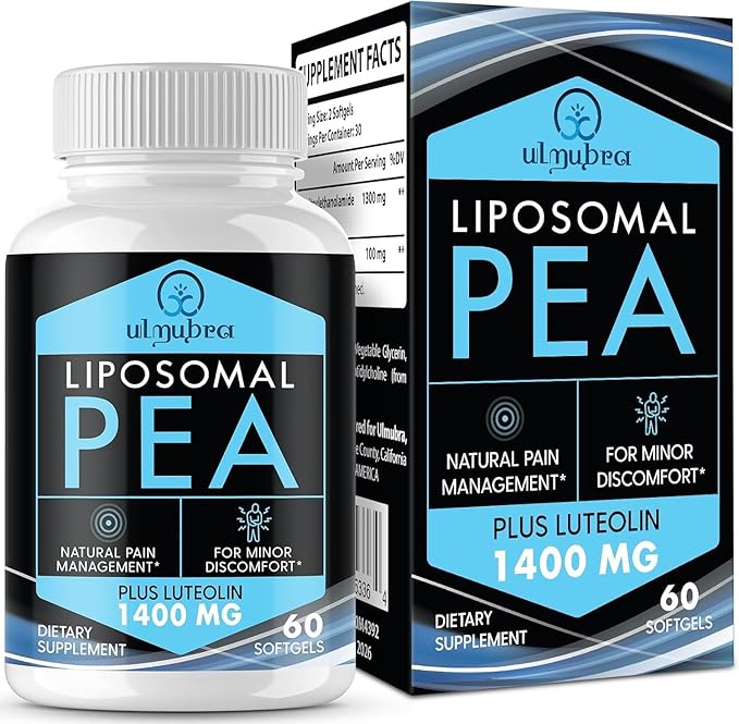 Liposomal Palmitoylethanolamide 1300 MG Plus Luteolin 100 MG, Superior Absorption, Micronized Pea Supplement for Discomfort Management, 60 Softgels