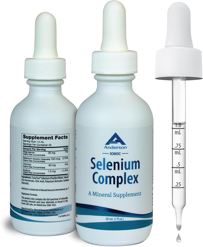 - Responsibly Dosed - Protect Yourself, Proftect Your Body - Selenium is essential in small quantities, while mega dosing is not advisable. This product is appropriate for supplementation and avoids a “more must be better” trap. Like all Anderson products, Ionic Selenium Complex is based in pure, natural, solar-evaporated sea water from Utah's Great Salt Lake.