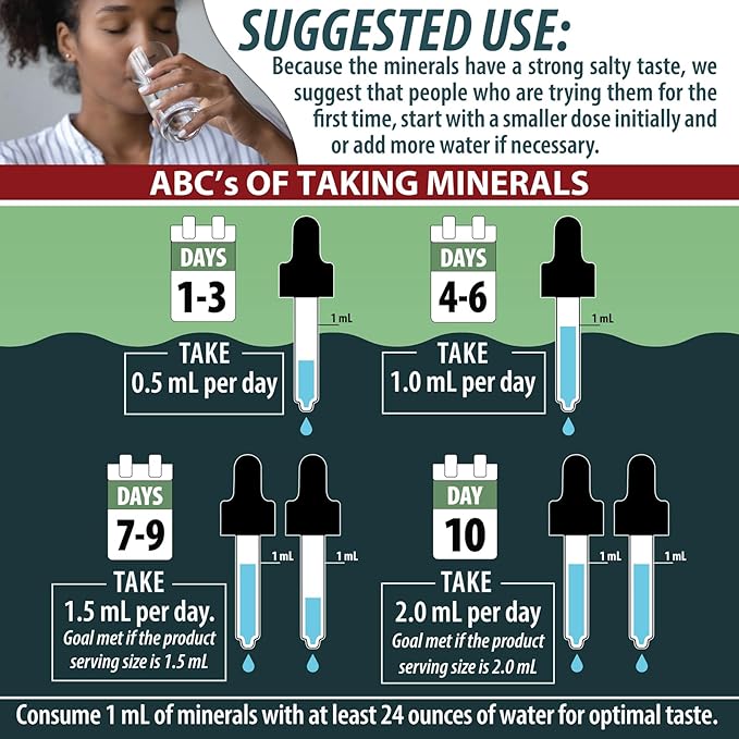 - FORTIFY YOUR BODY TO OPTIMUM LEVELS OF ESSENTIAL MAGNESIUM - Modern farming practices, stress, and poor diet have made most people around the world magnesium deficient. Using the calibrated glass dropper, simply measure 1-2mL daily into your drinking water, liquids and even the foods you eat and cook. While this ultra-concentrated formula tastes strong, taking small amounts throughout the day increases absorption and actually improves the taste of water, beverages and the foods you cook.