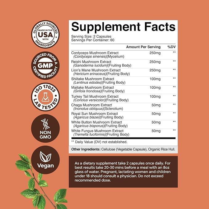 - 10X Blend - We use 10 types of adaptogenic mushrooms in our advanced functional mushroom nootropic supplement including Maitake Shiitake Turkey tail Royal sun and more to give you a complete product