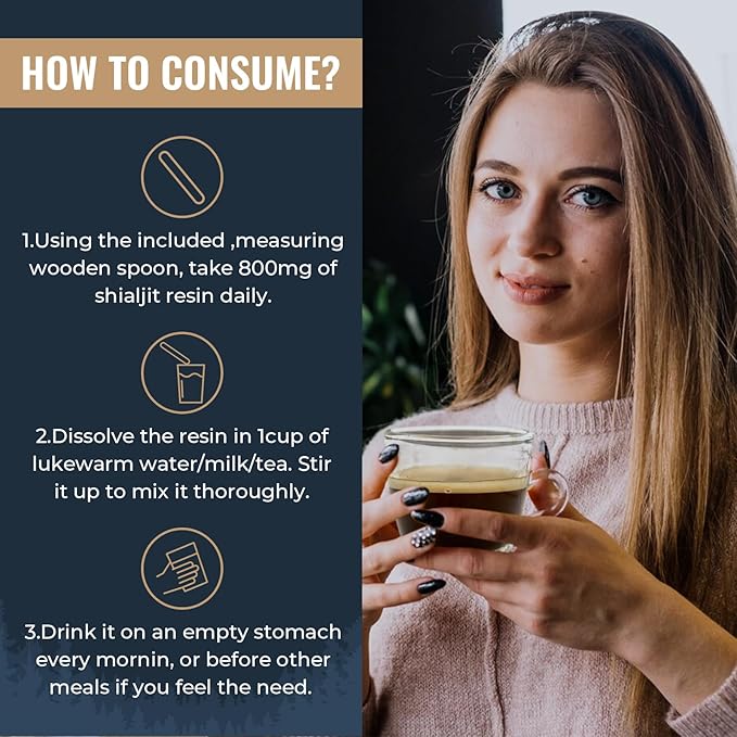 - Experience Ajoblanco's Unbeatable Service Guarantee: Our organic shilajit resin is meticulously crafted using non-chemical extraction methods, ensuring unparalleled purity and uncompromising quality. Say goodbye to fillers, additives, and sweeteners. Simply dissolve one cup of warm water, or your preferred beverage, with two pea-sized pieces of shilajit resin. For your convenience, each bottle comes with 3 handy measuring sticks, making it a breeze to use.