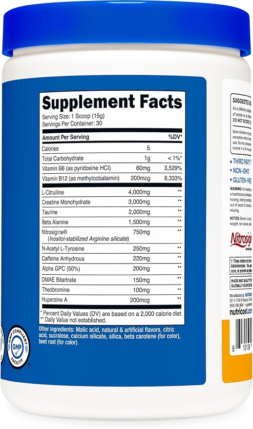 - Non-GMO and Gluten-Free: Nutricost Pre-Workout with Creatine is crafted with your dietary preferences in mind, being both Non-GMO and Gluten-Free.