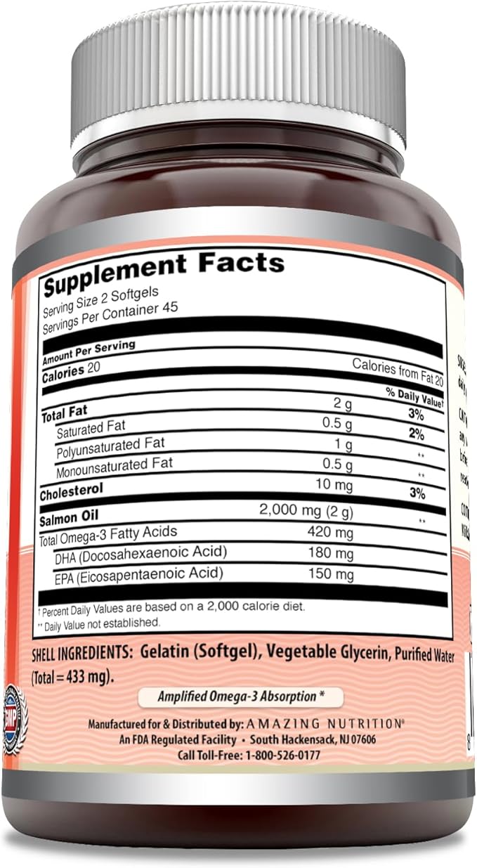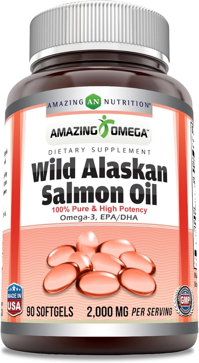 Amazing Omega Wild Alaskan Salmon Oil 2000mg Per Serving Softgels Supplement (90)