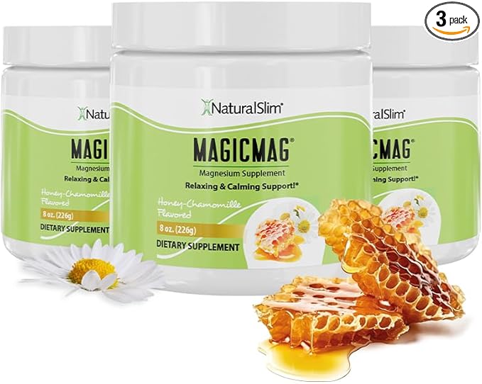 NaturalSlim Magicmag Pure Magnesium Citrate Powder Stress, Constipation, Muscle, Heart Health, and Sleep Support | Honey Chamomile Flavored Magnesium Supplement - 8oz Drink Mix (3 Pack)