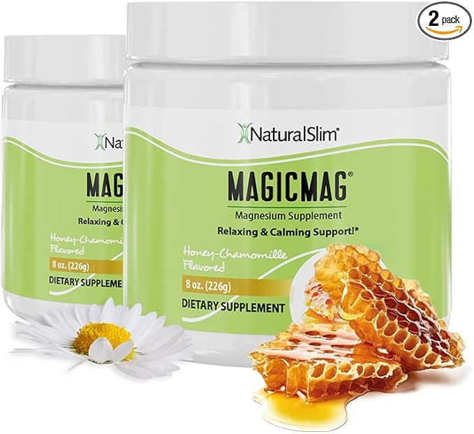 NaturalSlim Magicmag Pure Magnesium Citrate Powder Stress, Constipation, Muscle, Heart Health, and Sleep Support | Honey Chamomile Flavored Magnesium Supplement - 8oz Drink Mix (2 Pack)