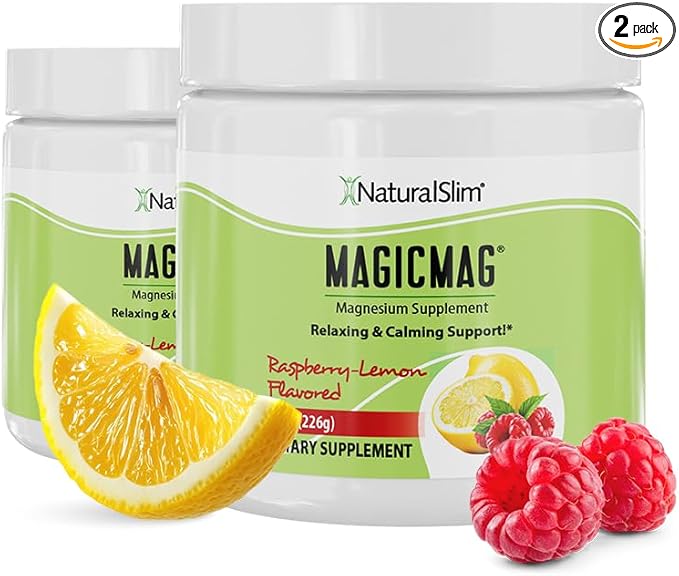NaturalSlim Magicmag Pure Magnesium Citrate Powder Stress, Constipation, Muscle, Heart Health, and Sleep Support | Raspberry Lemon Magnesium Supplement - 8oz Drink Mix (2 Pack)