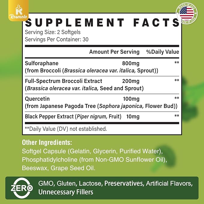 - ENHANCED NUTRIENT SYNERGY: Our formula boasts the inclusion of black pepper extract and quercetin, both known to enhance the absorption and efficacy of other nutrients. These ingredients work in synergy with sulforaphane, creating a potent and efficient supplement. This powerful formula has everything you need in just 2 softgels per day, and every bottle contains a 30-day supply