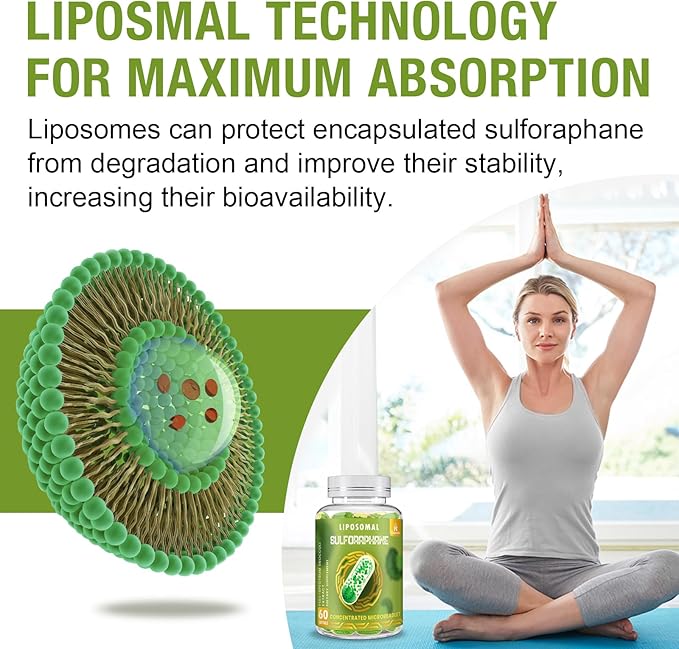 - 800MG LIPOSOMAL SULFORAPHANE FOR ENHANCED ABSORPTION: We've incorporated 800 mg of liposomal sulforaphane in each serving. Get more of what your body needs in every dose. Liposomal forms significantly boost absorption and utilization in the body, ensuring maximum value in every capsule