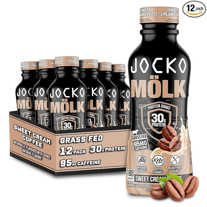 Jocko Fuel Mölk 30g Grass Fed Protein Shakes - No Added Sugar Protein Drinks KETO Friendly - Ready to Drink 12 FL Oz (Pack of 12) Sweet Cream Coffee