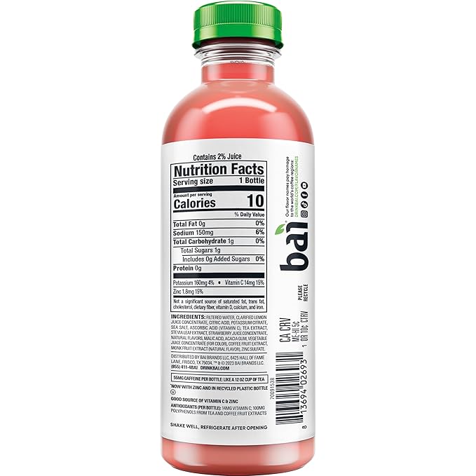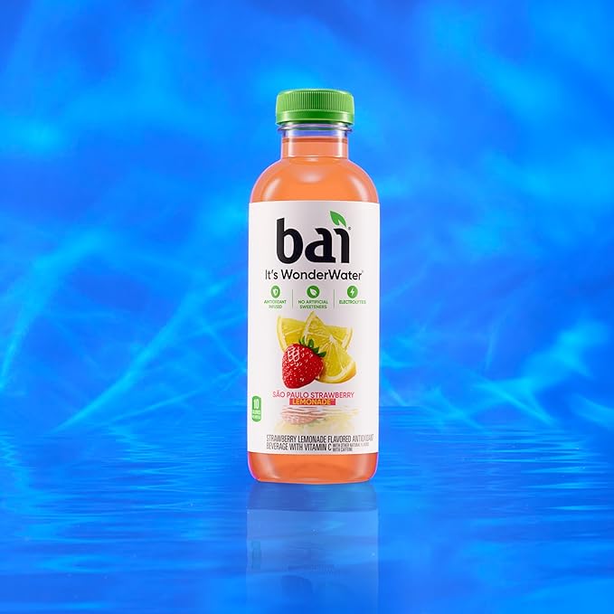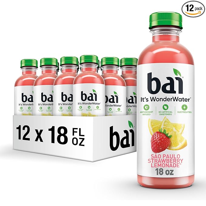 Bai Antioxidant Infused Water Beverage, São Paulo Strawberry Lemonade, with Vitamin C and No Artificial Sweeteners, 18 Fluid Ounce Bottle, 12 Pack