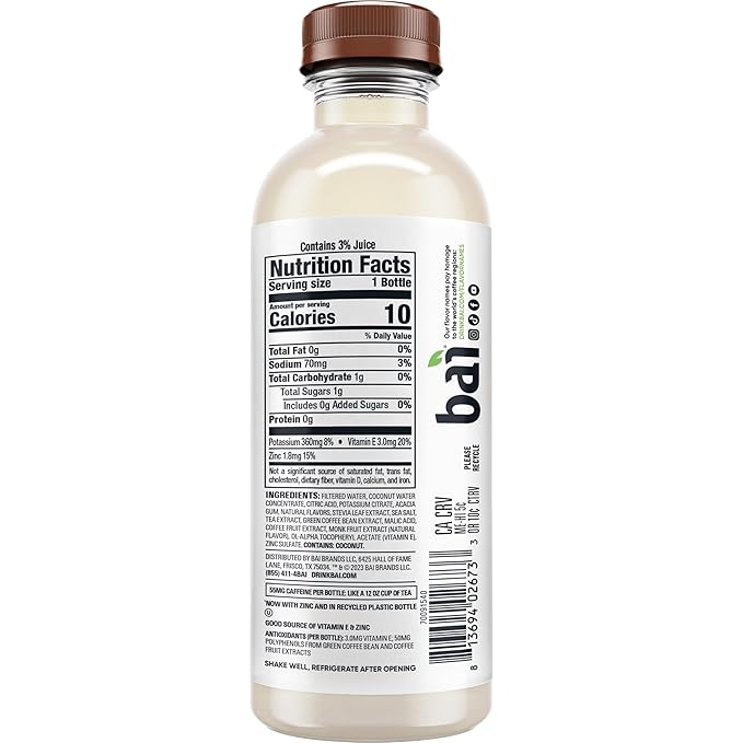 Bai Antioxidant Infused Water Beverage, Puna Coconut Pineapple, with Vitamin C and No Artificial Sweeteners, 18 Fluid Ounce Bottle, 12 Pack