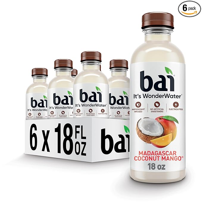 Bai Antioxidant Infused Water Beverage, Madagascar Coconut Mango, with Vitamin C and No Artificial Sweeteners, 18 Fluid Ounce Bottle, 6 Pack