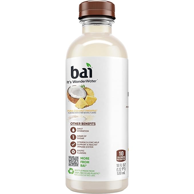 Bai Antioxidant Infused Water Beverage, Puna Coconut Pineapple, with Vitamin C and No Artificial Sweeteners, 18 Fluid Ounce Bottle, 6 Pack