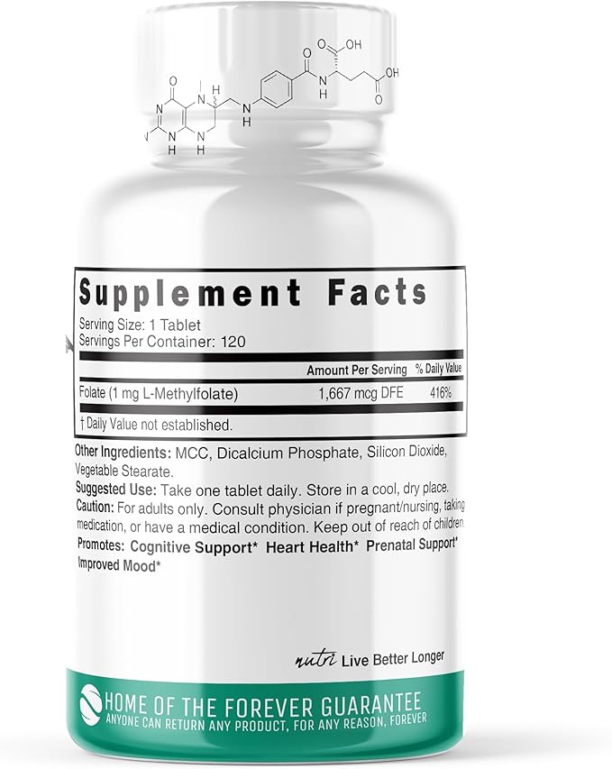 - 120 SERVINGS: Each bottle of our premium 5-MTHF supplement contains a generous supply of 120 vegan tablets, providing you with long-lasting support. Vegan-friendly and free from any animal-derived ingredients, our tablets are carefully crafted to cater to your specific dietary preferences while offering maximum efficacy.