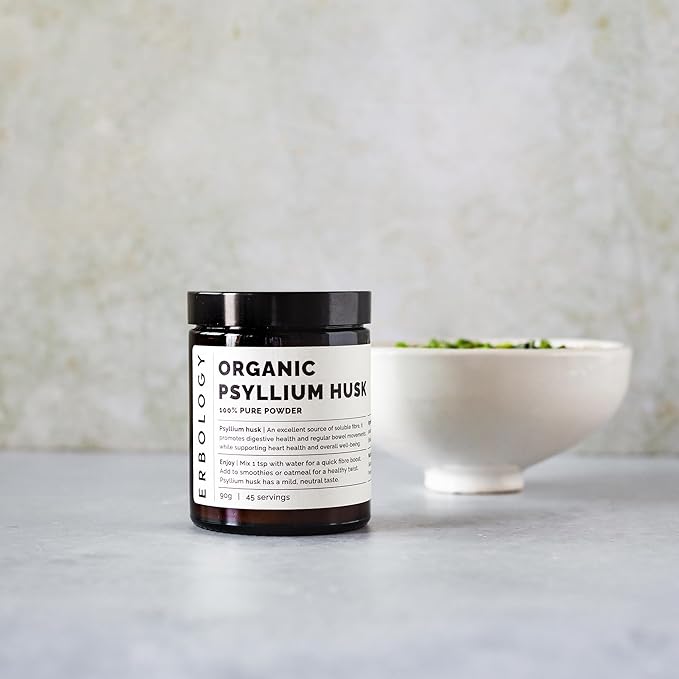 Erbology Organic Psyllium Husk Powder 3.2 oz - 45 Servings - Promotes Digestive Health and Regular Bowel Movements - Sustainably Sourced Straight from Farm in India - Small Batch - Vegan - GMO-Free