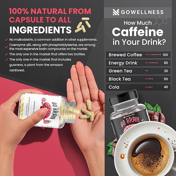 - 🧠NATURAL ENERGY AND BRAIN BOOST: Packed with energizing and Memory focus elements such as tyrosine, caffeine, and taurine, our formula provides a natural and sustained energy boost. Say goodbye to stress and fatigue as you embrace a vibrant and active daily routine.