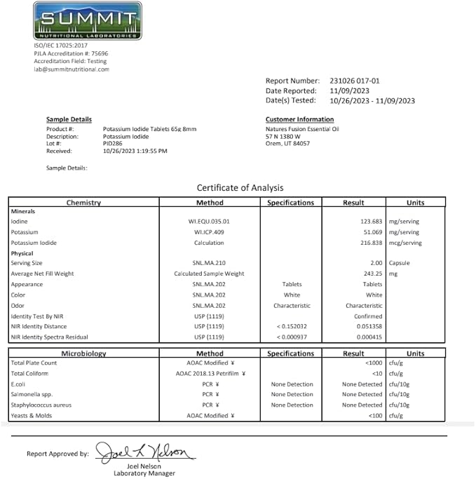 - ASSURED PURITY - Our Potassium Iodine Drops, potassium iodide tablets, and potassium iodine pills utilize Potassium iodide crystals of USP grade directly sourced. We provide third-party lab tests assessing heavy metals, potency, purity, and various other factors.