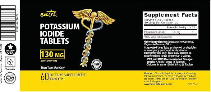 - PRODUCED IN THE USA: We stand out as the sole brand overseeing the sourcing, testing, production, and shipping processes from our FDA-registered Food-Grade facility. This unique approach allows us to provide unparalleled quality and value. Unlike others, our bottles never bear the label "Manufactured For." Our extensive range of iodine supplements includes Potassium Iodide Pills and Potassium Iodide 130 mg tablets.