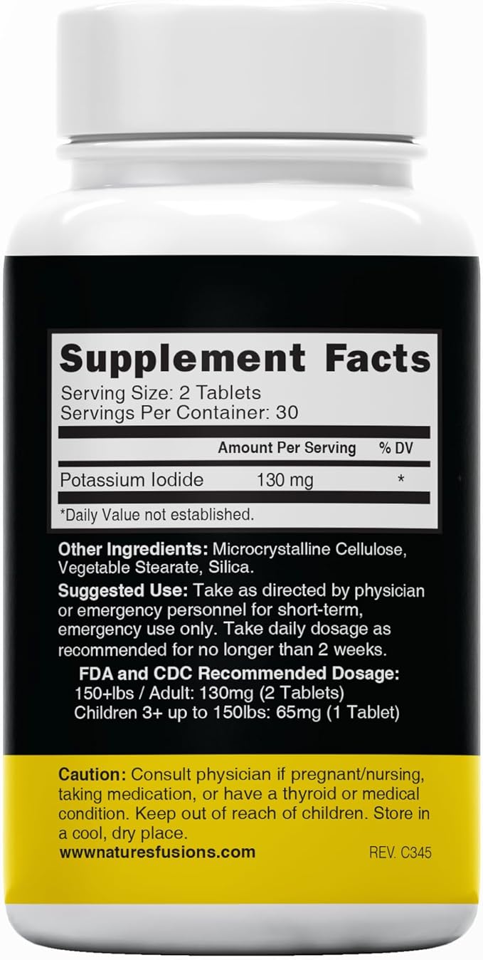 Nature's Fusions Potassium Iodide Tablets (Pack of 2) 130mg - 120 Tablets EXP 10/2032 - YODO Naciente - KI Pills - Yoduro de Potasio