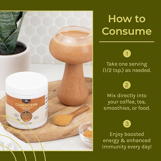 - ā” NATURAL ENERGY SUPPORT THROUGHOUT THE DAY Organic mushroom powder offering a clean, caffeine-free energy boost ā Supports those experiencing afternoon fatigue ā Helps maintain alertness and productivity without jittery side effects.
