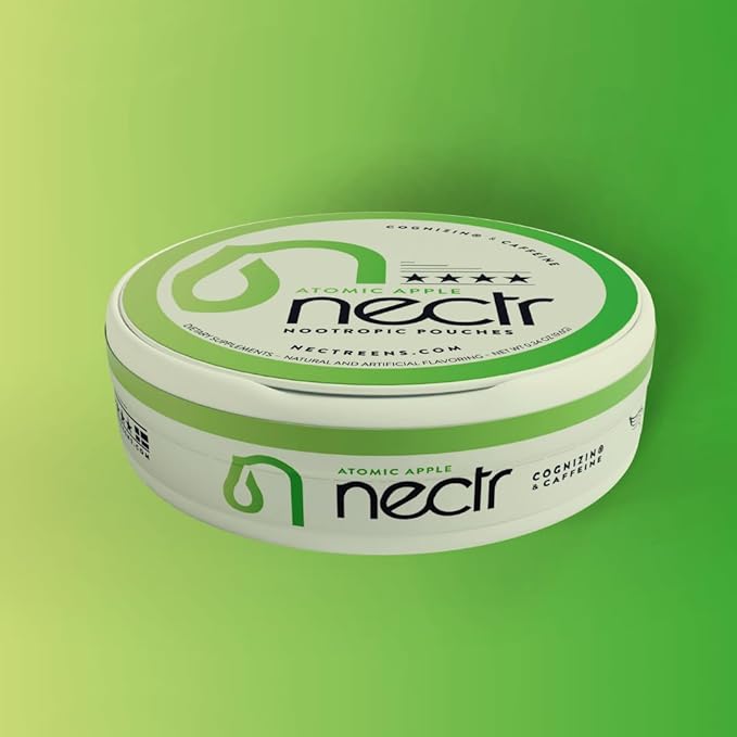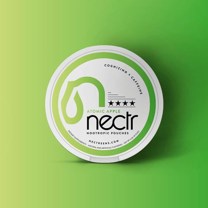 Nectr Energy Nootropic Pouches – Atomic Apple Flavored, Caffeine Pouches with Cognizin® Citicoline. Sugar-Free Brain Treats. Smooth, Sustained Focus & Energy Supplement - 1 Puck of 16pcs