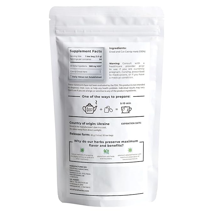 30 Bags Catnip Tea Catnip Herb Tea (Nepeta L.) - 30 Count 1.5g Bags Cat Nip Leaf Herb Hierba Gatera
