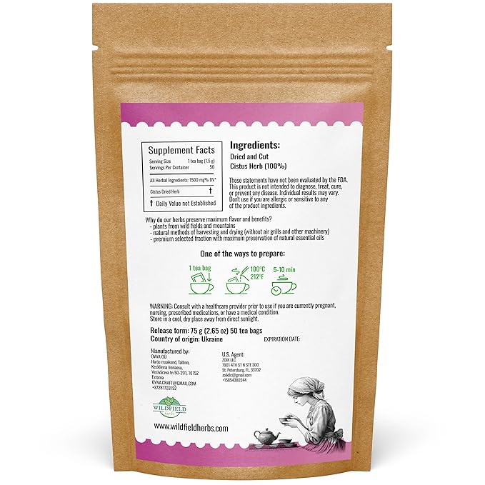 50 Bags Cistus Tea Cistus Incanus Tea Herbal (Cístus L.) - 50 Count 1.5g Herb Bags