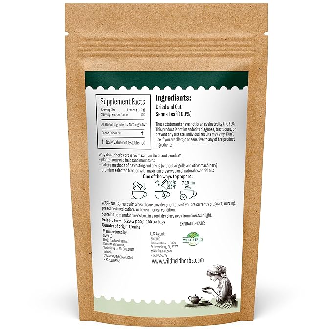 100 Bags Senna Leaf Senna Leaves Tea Herbal Tea (Senna Alexandrina) - 100 Count 1.5g Bags Hoja De Sen Hojas De Sen Para Te