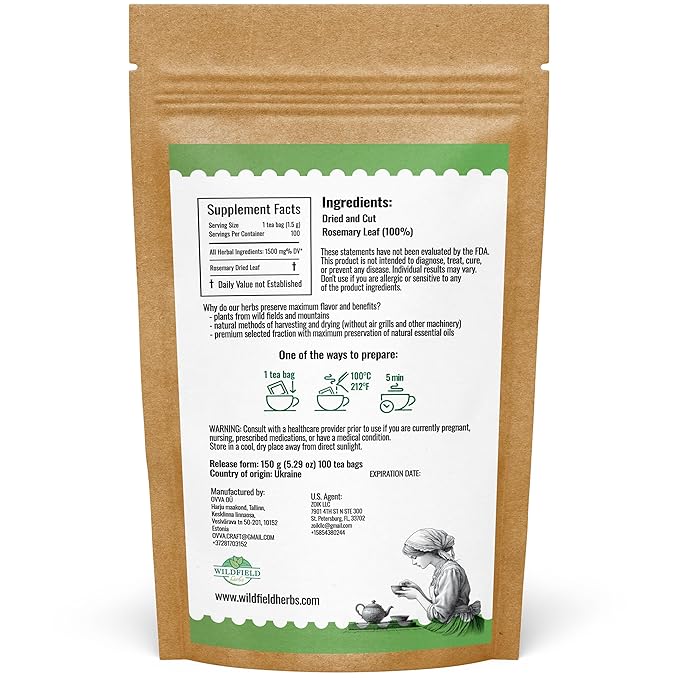 100 Bags Rosemary Tea Herbal Tea (Salvia Rosmarinus) - 100 Count 1.5g Bags Rosemary Herb Te De Romero