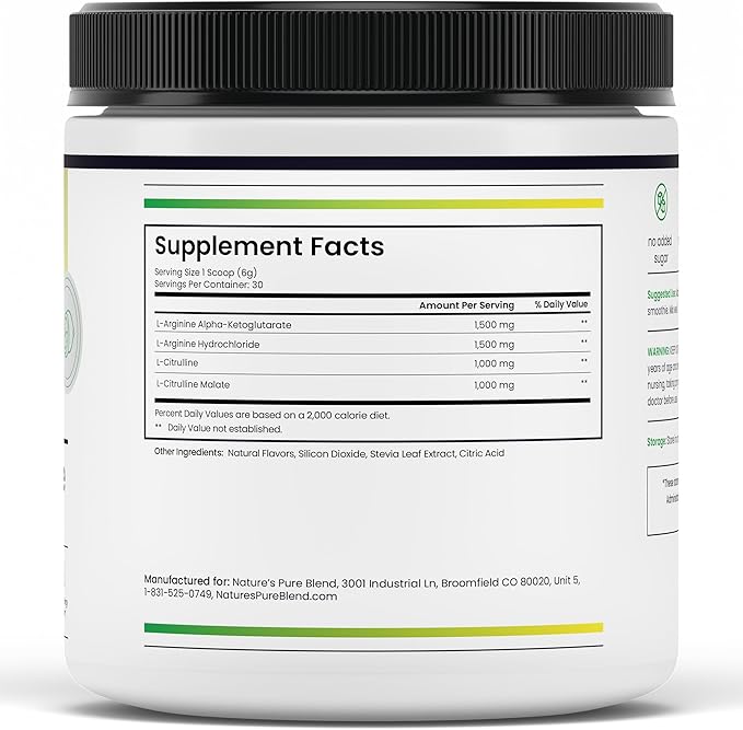 - What Is L-Arginine & L-Citrulline? – These essential amino acids work together to naturally support nitric oxide levels. Our l arginine powder converts into nitric oxide for fast absorption, while l citrulline helps maintain long-term blood circulation benefits and energy.