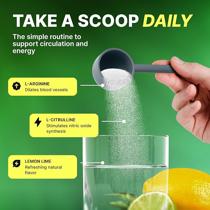 - Natural Energy & Endurance Support: Our nitric oxide powder is formulated to help support steady energy and endurance by promoting oxygen flow and circulation. A great option for daily blood flow and performance support — without relying on caffeine or stimulants.*