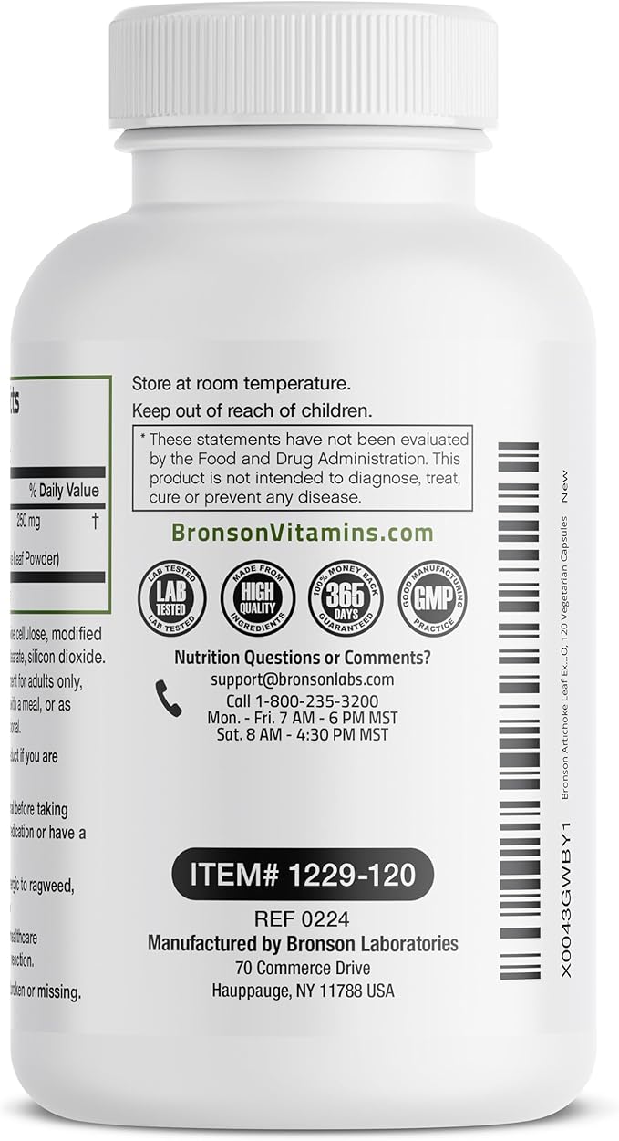 - Superior Quality Vegan/Vegetarian Formula: Laboratory tested Non-GMO, Gluten-Free and Soy-Free. Bronson products are in-house tested and carefully manufactured by trained professionals in our state-of-the-art facility that is located in Hauppauge, New York. Artichoke Leaf Extract is Vegan/Vegetarian friendly and contains no ingredients derived from animals.