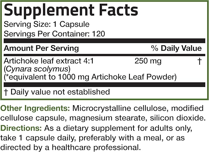 - Premium Extract: Bronson Artichoke Leaf provides the equivalent to 1000 MG of Artichoke Leaf powder (from 250 MG of 4:1 extract) to help support healthy digestion and liver function.*