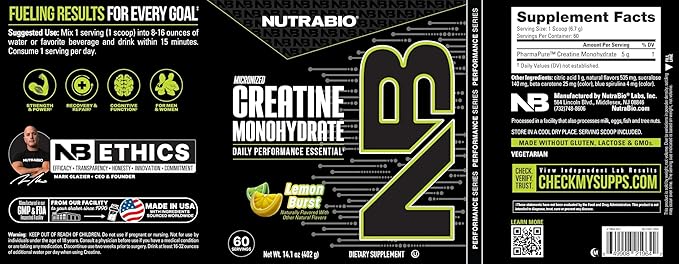 - Pure Monohydrate Creatine: Enhance energy production, promote muscle growth, and improve your physical performance with NutraBio’s Creatine Monohydrate. Every batch is tested by a third-party lab and verified to be 99.9% pure creatine monohydrate.