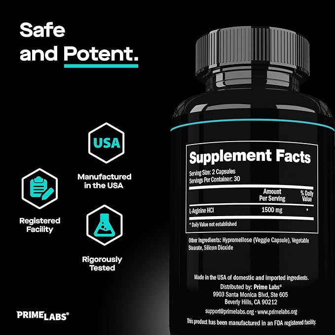 - Aid in Recovery: Speed up muscle recovery with Prime Labs L-Arginine. Our 1500 mg formula supports faster healing and repair after intense physical activity, helping you get back to your routine quicker.