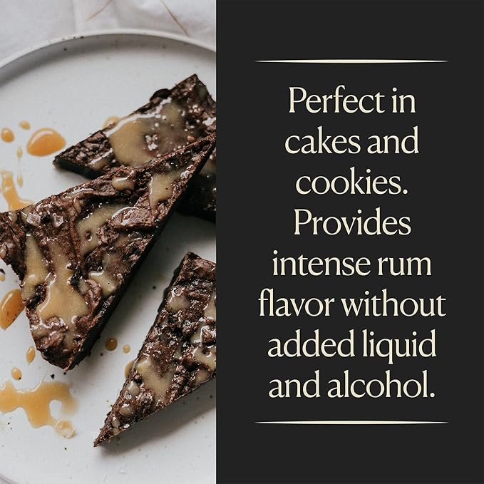 - Provides intense rum flavor without added liquid and alcohol. Fantastic in cookies and cakes.