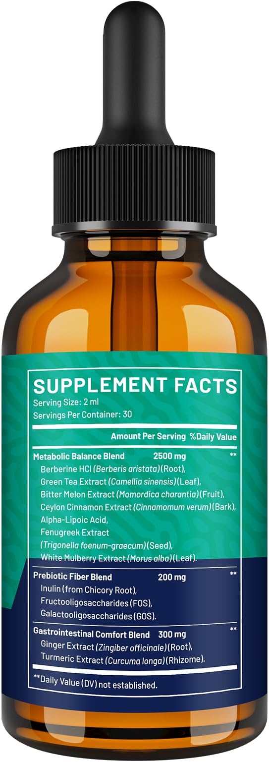 Liposomal Berberine HCL Liquid Drops – Advanced 12-in-1 Herbal Formula with Ceylon Cinnamon, Bitter Melon, Green Tea & More – 4 Fl Oz