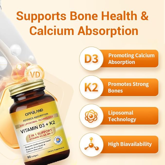 - HELPS MAXIMIZE CALCIUM UTILIZATION – This vitamin D3 and K2 combo works together to ensure calcium is absorbed efficiently and directed to bones instead of accumulating in other areas of the body.