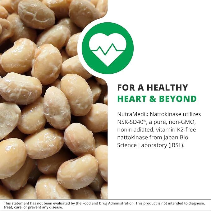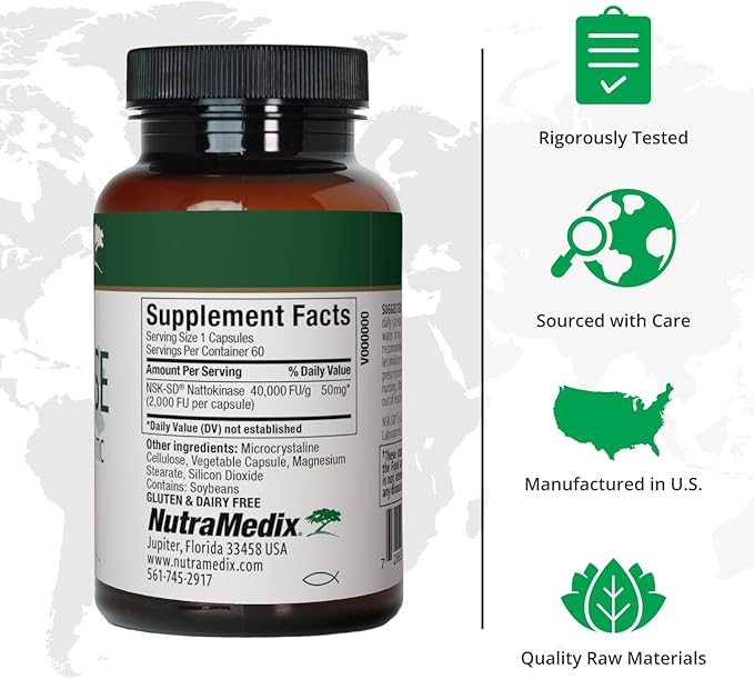 NutraMedix Nattokinase Supplement - Nattokinase 2000 FU per Serving - Formulated for to Support Heart Health and Healthy Circulation - Gluten + Dairy-Free (60 Capsules)