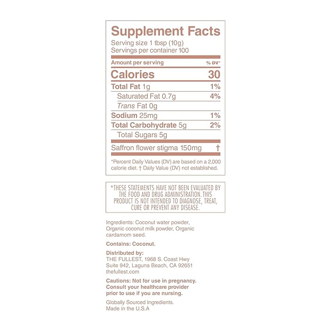 THE FULLEST - Warm Feelings 100-Day Supply Saffron Latte Bulk - Saffron, Cardamom, and Coconut Based Wellness Powder for Mood and Sleep Support, Sugar-Free, Vegan, and Gluten-Free, 100 Servings