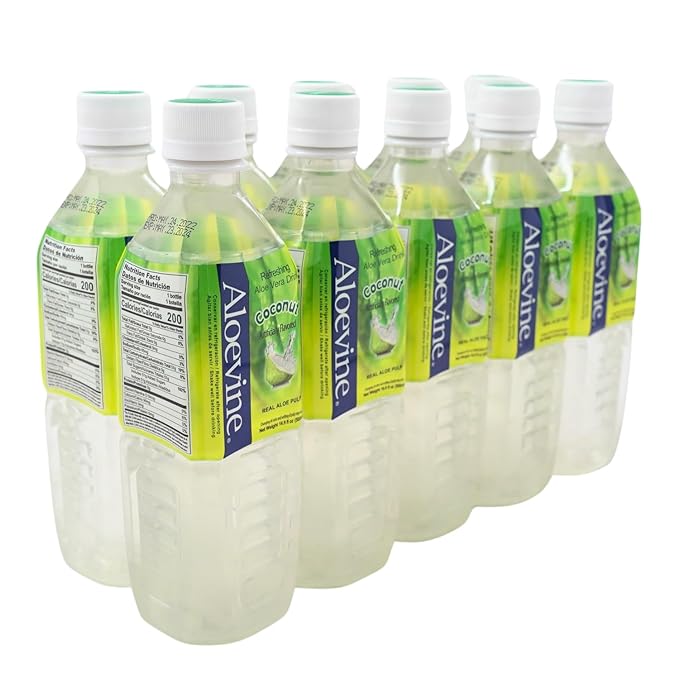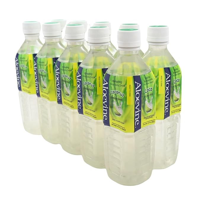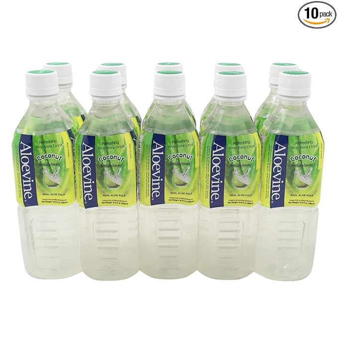 Aloevine Aloe Vera Drink Coconut healthy juice pure with chunks of aloe l 16.9 oz. 10 pack l plant based Vegetable Korean drinks