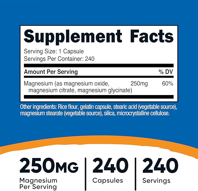 Nutricost Magnesium Complex 250mg, 240 Capsules - Magnesium Oxide, Citrate, and Glycinate - Gluten Free and Non-GMO