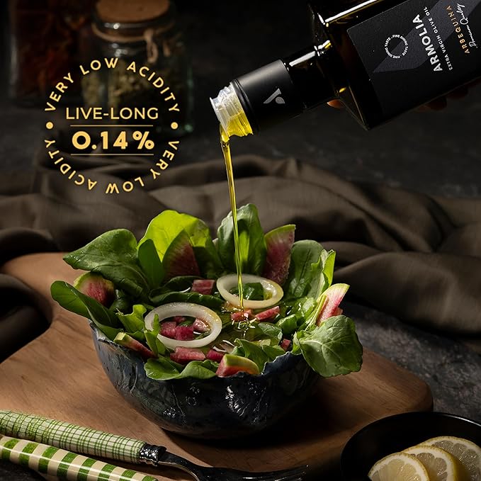 - HIGH POLYPHENOL & ULTRA-LOW ACIDITY FOR A SMOOTH TASTE DRINKING– Our premium extra-virgin olive oil features an rich high-polyphenol (<400 mg/kg) for health and ultra-low acidity level (%0.14) making it gentle on the stomach and perfect for drinking straight from a spoon or mixing with lemon.