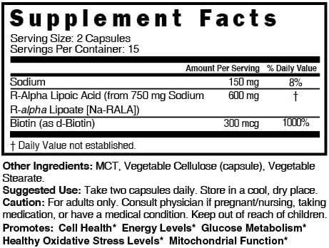 - CLINICAL DOSAGE: Each 2 capsules serving contains a potent 600mg dose of R Alpha Lipoic Acid, a powerful antioxidant that helps neutralize free radicals, reducing oxidative stress and supporting healthy cellular function. Each bottle holds 15 servings of R Alpha Lipoic Acid 600mg Capsules.