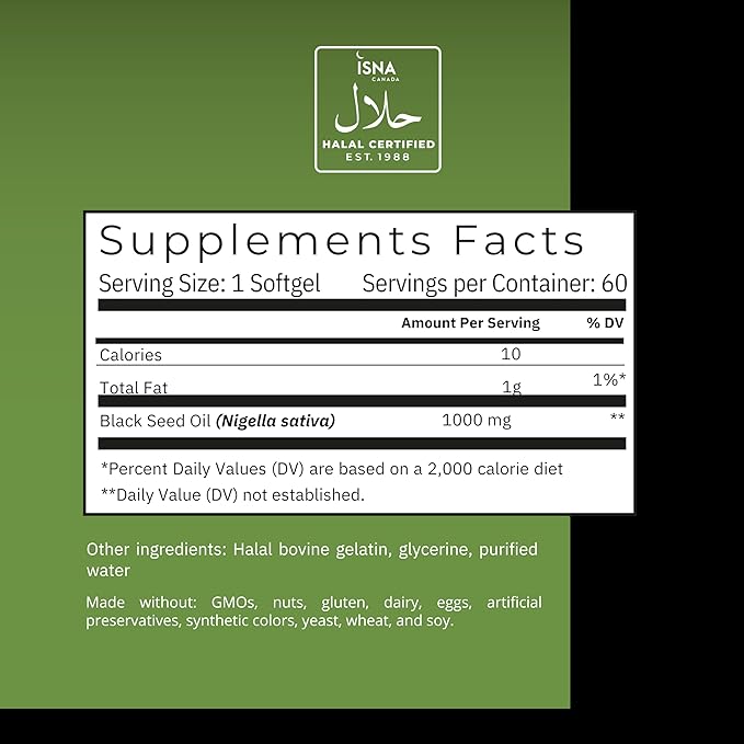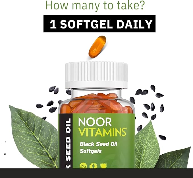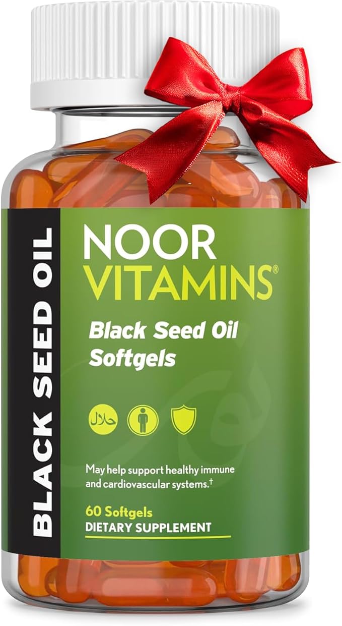 Noor Vitamins Halal Black Seed Oil Capsules, Halal Vitamins, 1000 mg Black Seed Oil from Nigella Sativa, Thymoquinone, Non-GMO, Gluten Free, 60 Count