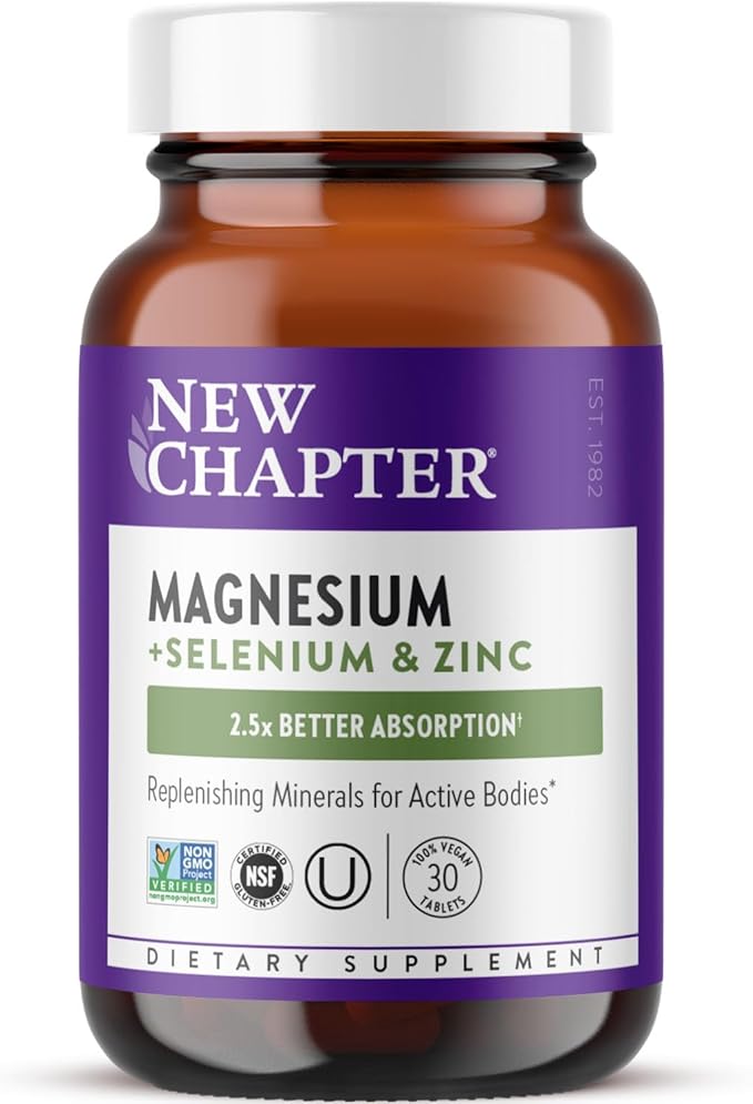 New Chapter Magnesium-Selenium-Zinc Supplement for Active Bodies, Bounce Back After Exercise with Muscle Support Minerals + Hydrating Electrolytes, 325 mg Magnesium in One-Daily Tablet, 30 Count