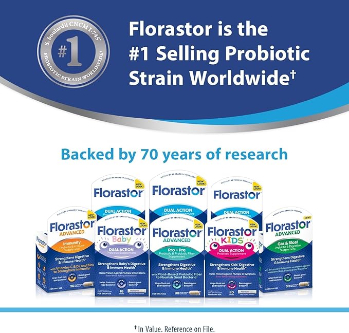 - The probiotics of choice: The number 1 selling probiotic strain in its class worldwide; Florastor formulas are made with ingredients that are vegetarian, gluten-free, titanium dioxide-free and appropriate for lactose intolerance